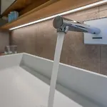 Het appartement heeft een ingerichte kitchenette die wordt aangevuld met een waterkoker, een koelkast en een oven.